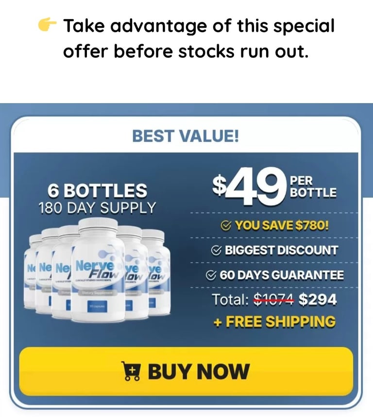 For this reason, I strongly advise that you order your bottles only from the official website. Doing so ensures that you receive the authentic formulation of NerveFlow, which is specifically designed to support and protect nerve health, reduce the risks of nerve complications, and improve overall vitality.